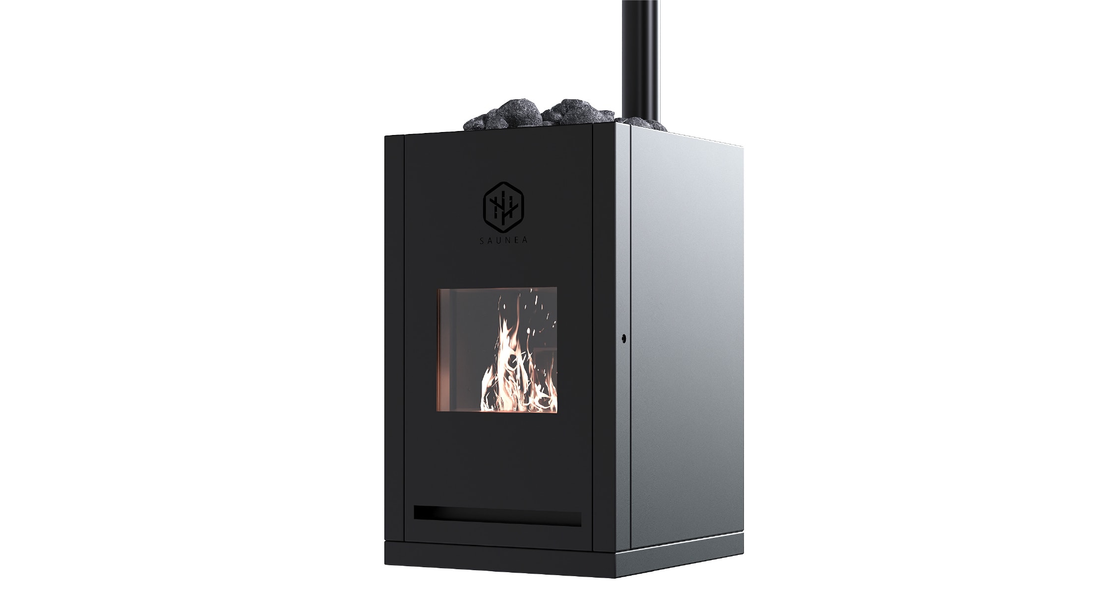 ボタン一つで自動着火のサウナ用木質ペレットストーブです。電気ストーブの使いやすさと炎の両立を実現しました。